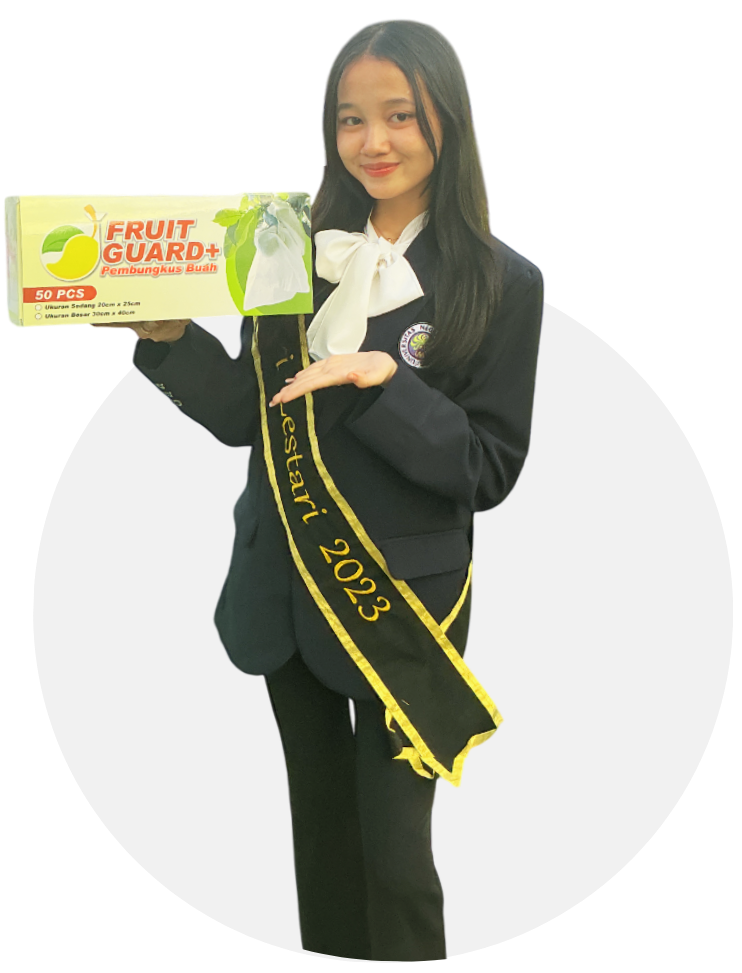 Inovasi pembungkus buah pra-panen terbuat dari perpaduan Polypropylene dengan bahan ramah lingkungan seperti limbah kulit udang dan pati singkong. FruitGuard+ memberikan perlindungan maksimal sehingga Anda bisa memanen buah yang lebih sehat, berkualitas, dan bernilai jual tinggi.