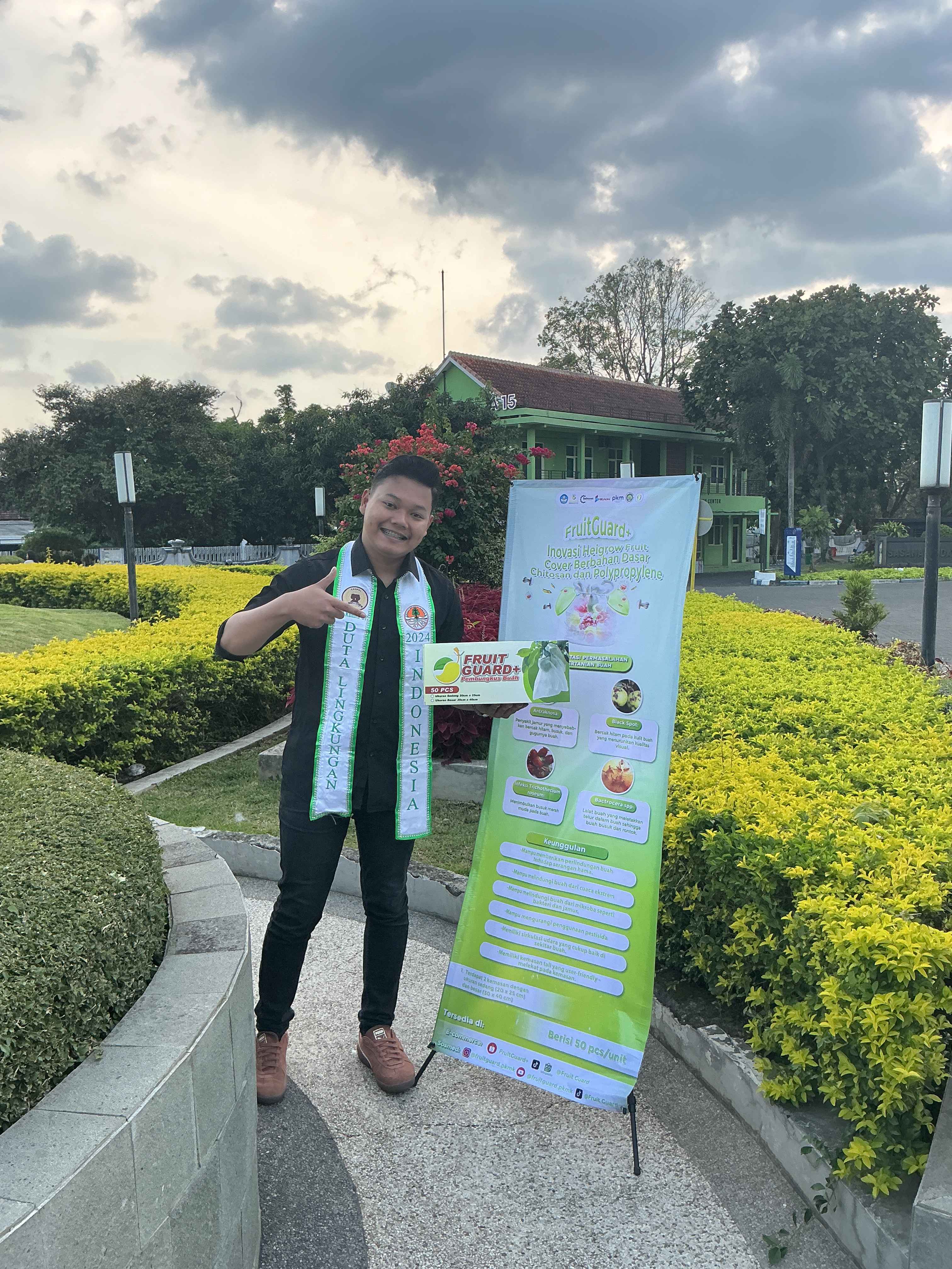 FruitGuard+ membungkus buah dengan campuran Polypropylene, limbah kulit udang, dan pati singkong untuk hasil panen yang sehat dan berkualitas.